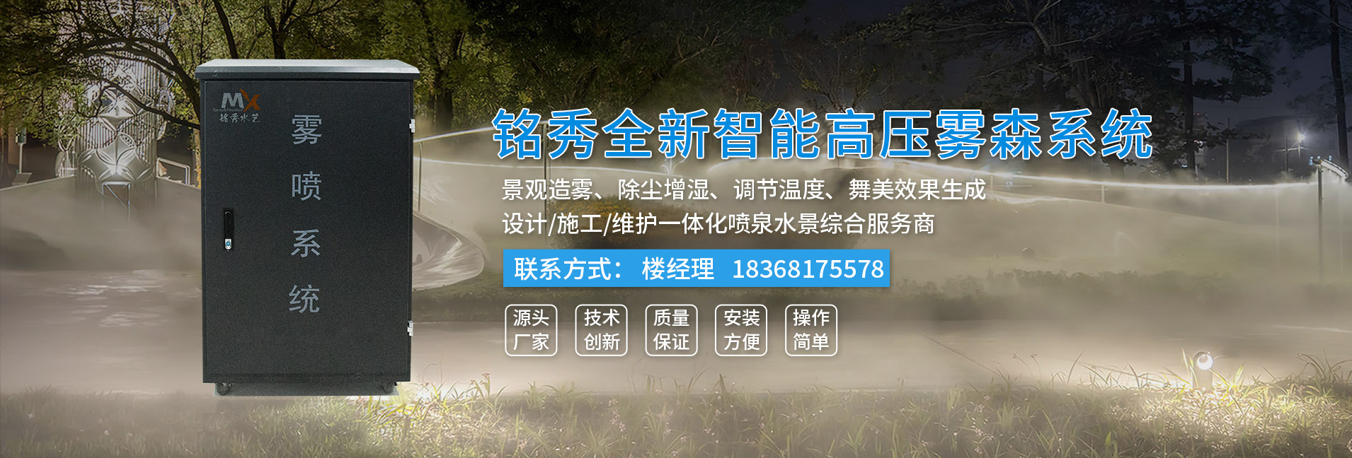 杭州銘秀水藝水景設(shè)備有限公司位于杭州余杭鳳都工業(yè)園區(qū)內(nèi),是一家從事噴霧(霧森)設(shè)備、冷霧設(shè)備、噴泉設(shè)備集各種新型水景設(shè)備生產(chǎn)、銷(xiāo)售與租賃的企業(yè)。